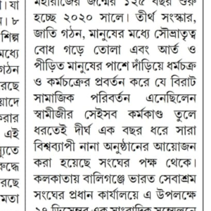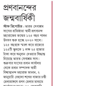 News Clips from Newspaper on 125th Birth Anniversary of Swami Pranavananda 2020