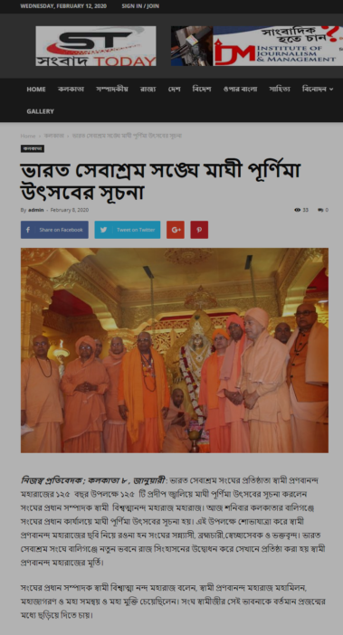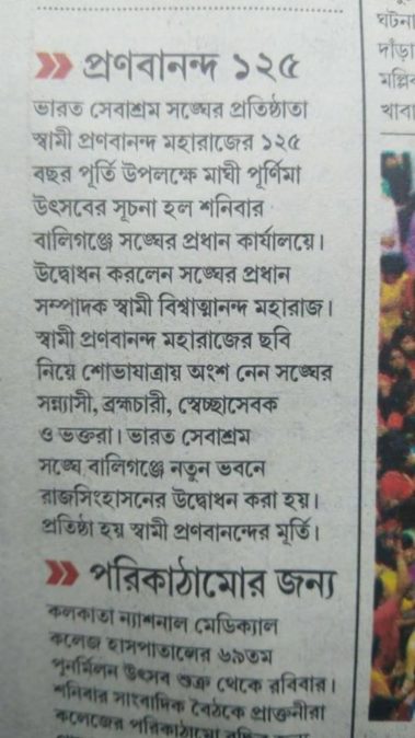 News Clips from Various Newspaper on Maghi Purnima Celebration 2020 of Acharya Swami Pranavananda